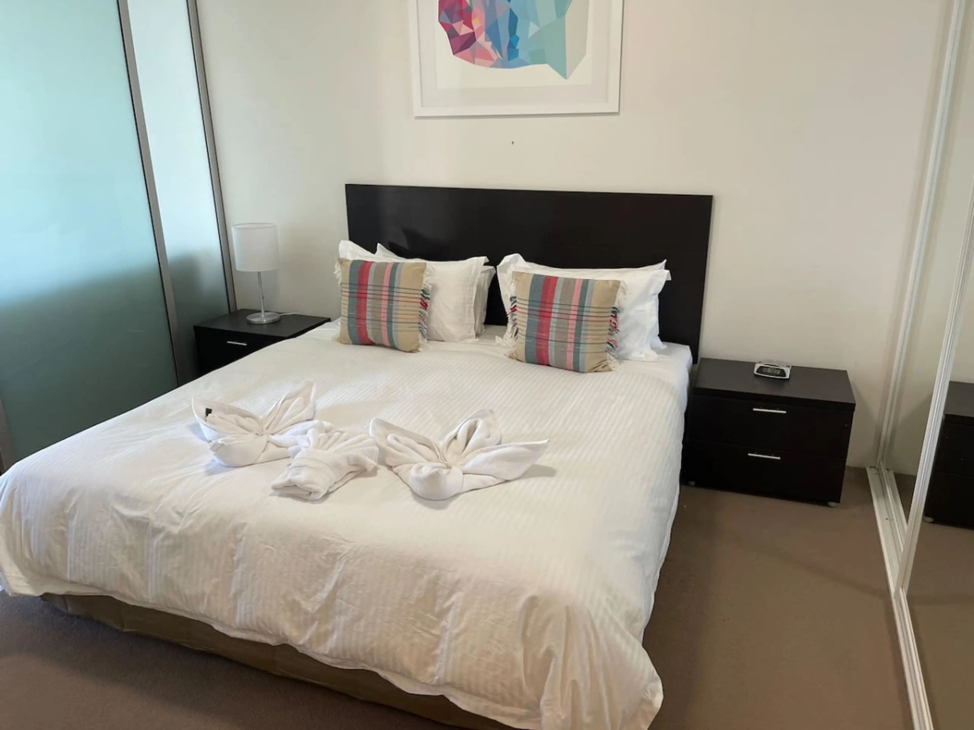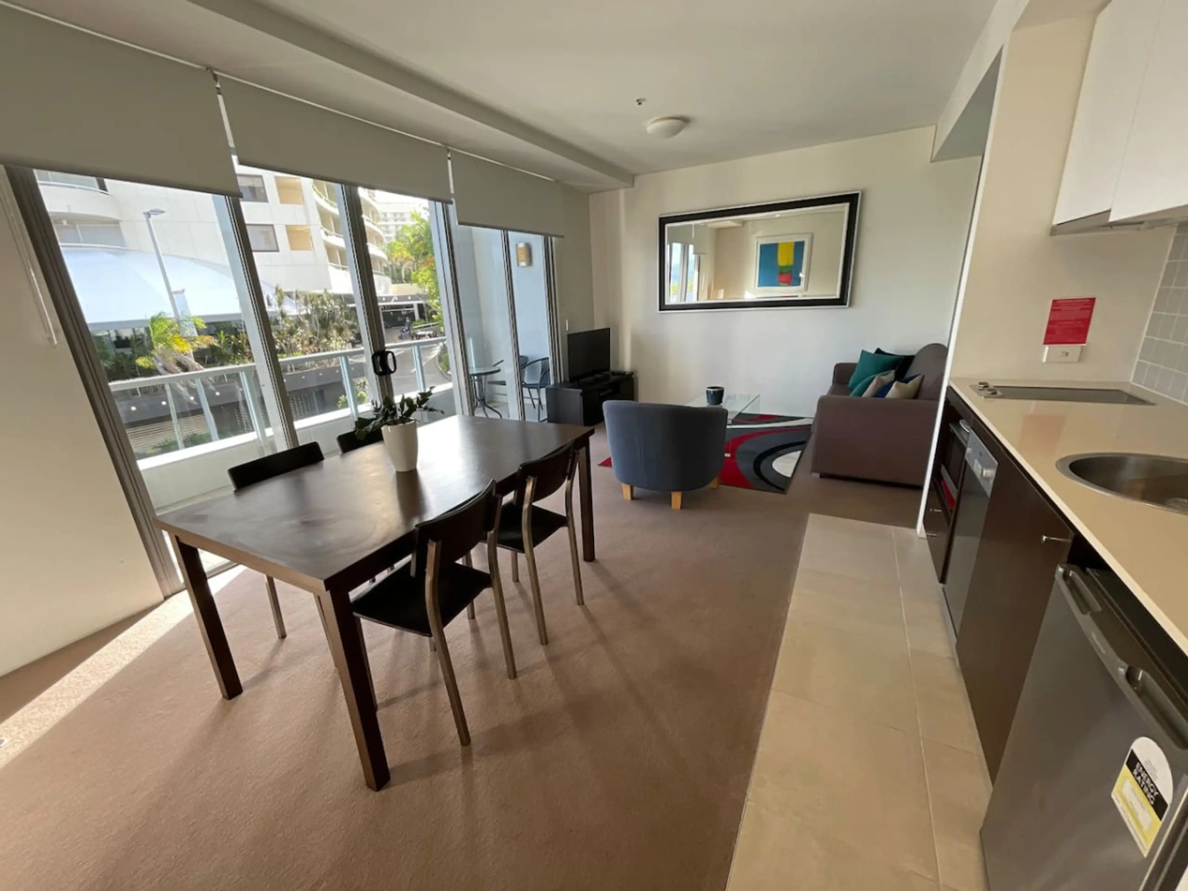 Sit on your private balcony and take in the stunning water and mountain views This spacious one bed apartment features a king size bed, kitchen with microwave and cooking hobs, and a large bathroom. The apartment features a full laundry with sink, and separate washer and dryer. You will also...